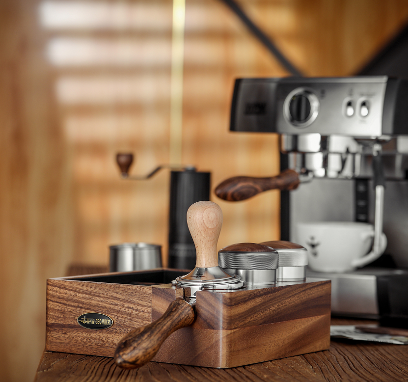 The Mhw-3Bomber is a versatile and stylish knock box and portafilter holder, designed for coffee enthusiasts. Made from walnut wood, it accommodates portafilters ranging from 51-58mm for easy clean up while preparing your perfect cup of coffee. Effortlessly dispose of used grounds and keep your workspace tidy.